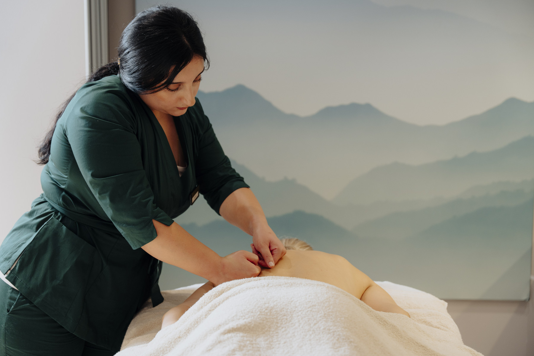 Wenn du im Behandlungsraum angekommen bist kannst du dich im geschützten Umkleidebereich entkleiden und danach auf die beheizte Liege legen und selbstständig zudecken. Erst dann betreten die Therapeuten den Raum. Auch während der Behandlung wird deine Intimsphäre durch sogenannte Abdecktechniken gewahrt, die dich vor Blicken schützen.